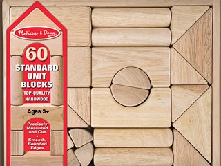 A couple of days ago we picked up a set of 60 Standard Unit Blocks from Melissa and Doug. Thanks Grandma Myra!!! Tesla spent a a good hour playing with them as soon as I opened them. I knew this was immediately a good choice! As you know I have been reading up on early childhood education. Slowly but surely I'm reading up on it. To tell you the truth it's more slowly then surely. One of the suggestions in the book Creative Curriculum was to use blocks to represent other toys to stimulate creativity and brain development. So perhaps we'll play with some toy cars and make noises and push them around the room, then perhaps I'll do the same thing with a block, pushing it around the room and making noises as if it was a car. I found this very interesting, and as I have always been an imaginative person I feel that this kind of stimulation will be easy for me to do with Tesla.